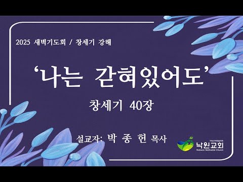 일시 : 25/12/25제목 : 나는 갇혀 있어도본문 : 창세기 40장말씀선포 : 박종헌 담임목사1 그 후에 애굽 왕의 술 맡은 자와 떡 굽는 자가 그들의 주인 애굽 왕에게 범죄한지라2 바로가 그 두 관원장 곧 술 …