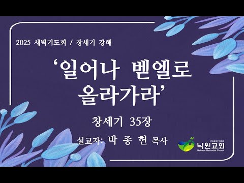 일시 : 25/12/17제목 : 일어나 벧엘로 올라가라본문 : 창세기 35장말씀선포 : 박종헌 담임목사1 하나님이 야곱에게 이르시되 일어나 벧엘로 올라가서 거기 거주하며 네가 네 형 에서의 낯을 피하여 도망하던 때에…