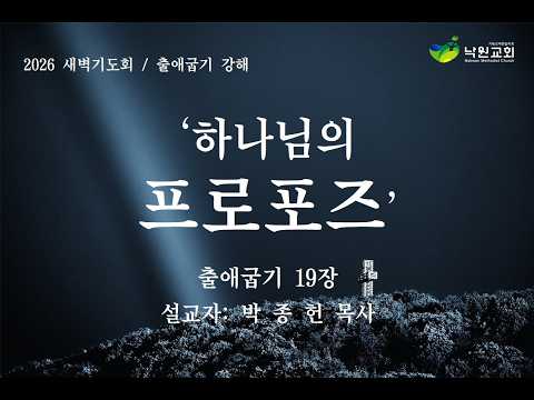일시 : 26/04/06제목 : 하나님의 프로포즈본문 : 출애굽기 19장말씀선포 : 박종헌 담임목사1 이스라엘 자손이 애굽 땅을 떠난 지 삼 개월이 되던 날 그들이 시내 광야에 이르니라2 그들이 르비딤을 떠나 시내 …