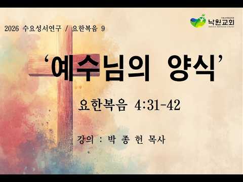 일시 : 26/04/08제목 : 예수님의 양식본문 : 요한복음 4:31-42말씀선포 : 박종헌 담임목사31 그 사이에 제자들이 청하여 이르되 랍비여 잡수소서32 이르시되 내게는 너희가 알지 못하는 먹을 양식이 있느니…