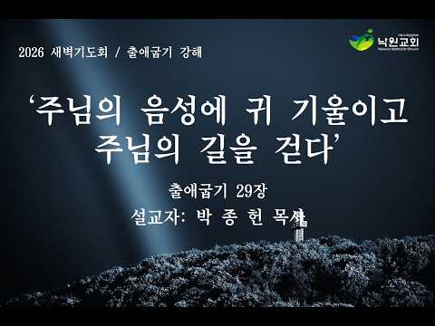 일시 : 26/04/20제목 : 하나님의 은혜가 머무는 자리본문 : 출애굽기 27장말씀선포 : 박종헌 담임목사1 너는 조각목으로 길이가 다섯 규빗, 너비가 다섯 규빗의 제단을 만들되 네모 반듯하게 하며 높이는 삼 규…