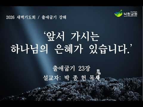 일시 : 26/04/10제목 : 앞서가시는 하나님의 은혜가 있습니다.본문 : 출애굽기 23장말씀선포 : 박종헌 담임목사1 너는 거짓된 풍설을 퍼뜨리지 말며 악인과 연합하여 위증하는 증인이 되지 말며2 다수를 따라 악…